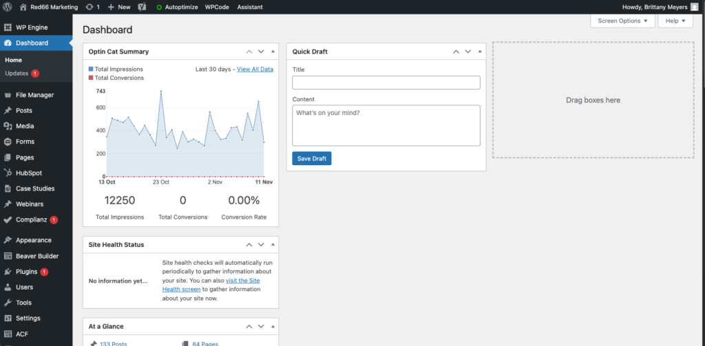 To make updates, you’ll log into your website’s WordPress Dashboard.