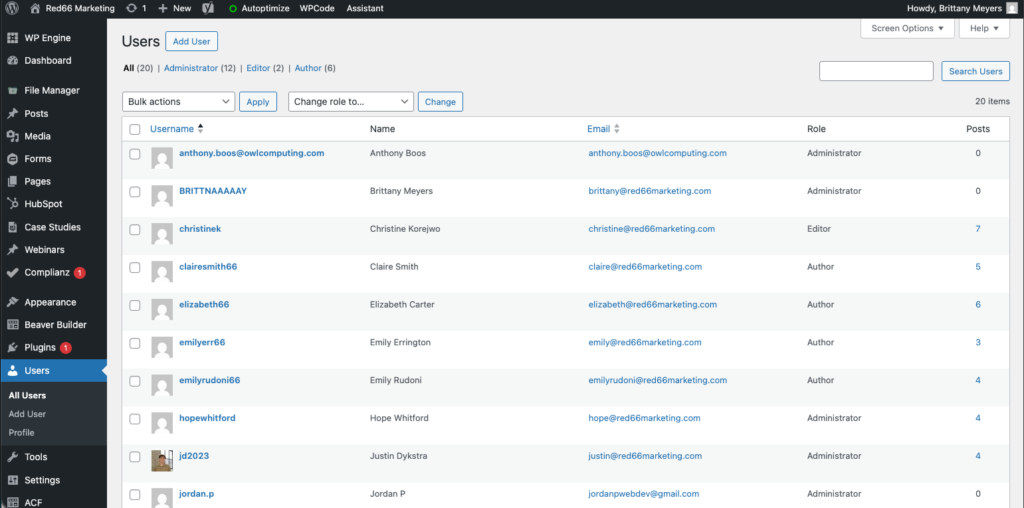 | Admin | Full access to everything on the site, including settings and plugins | Website owner, RED66 support team |